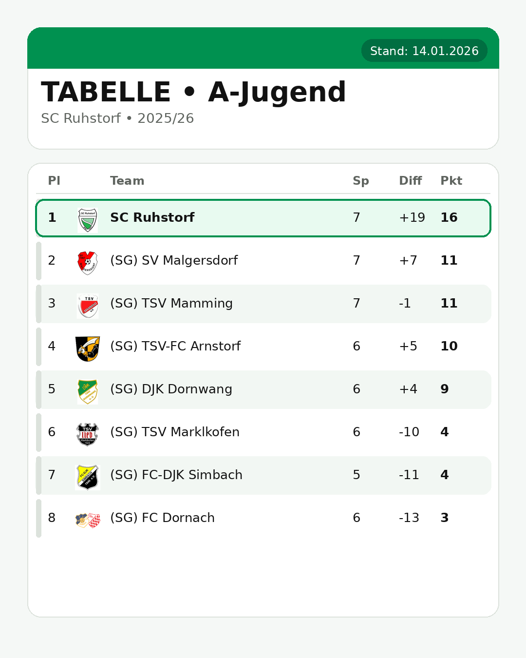 Letztes Spiel am Tag: (SG) SpVgg Stephansposching (FB, AJ) vs SC Ruhstorf (FB, AJ)