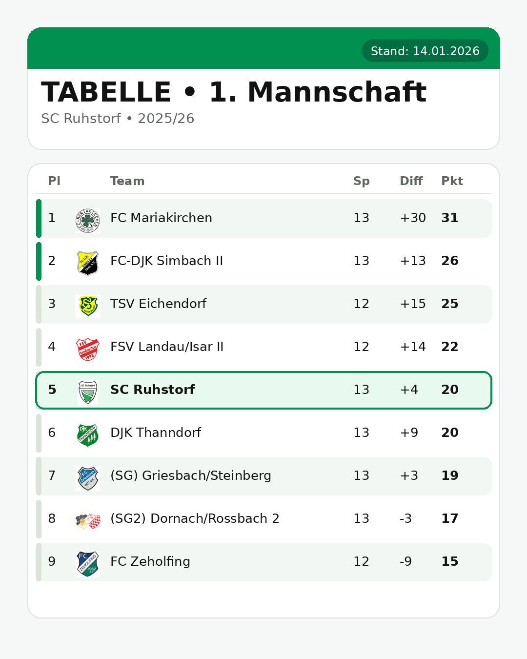 Letztes Spiel am Tag: SC Ruhstorf 1 (1T) vs TSV 1920 Niederviehbach 1 (1T)
